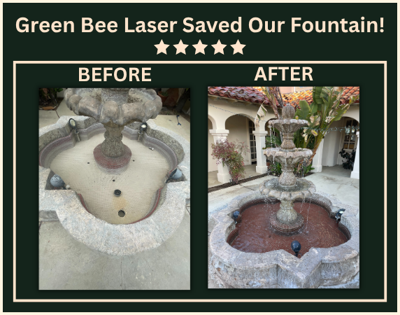 We had an unfortunate experience with our outdoor fountain when an incorrect chemical was used to treat algae, leaving a stubborn residue that no cleaning method could remove. The fountain remained like that for years, which was disappointing given its beautiful design. Thankfully, Green Bee Laser stepped in with their innovative laser technology and worked wonders! They successfully restored the fountain to its original glory, removing the residue and bringing back its charm. We’re thrilled with the results and highly recommend Green Bee Laser for their expertise and effective restoration services.
